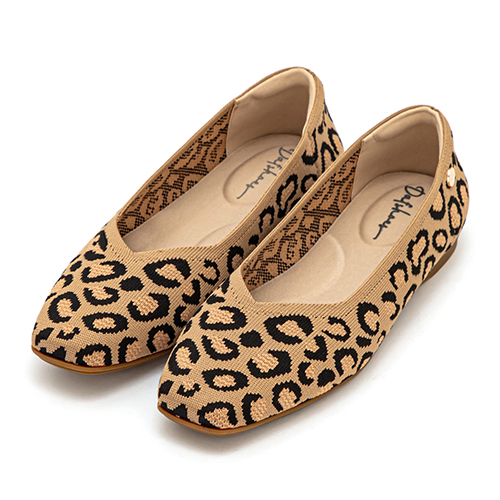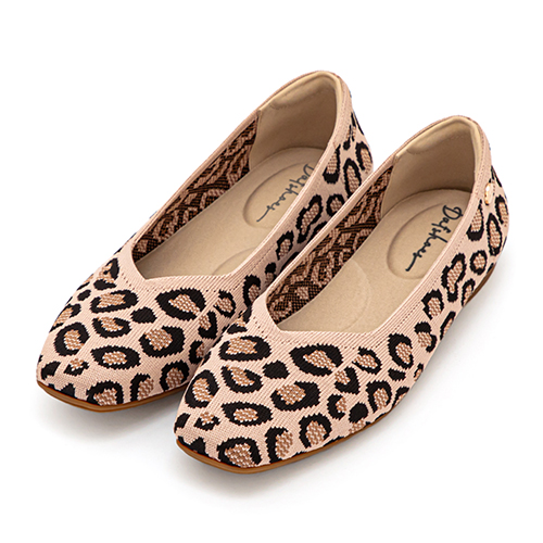 【3D零感雲織鞋】豹紋方頭娃娃鞋