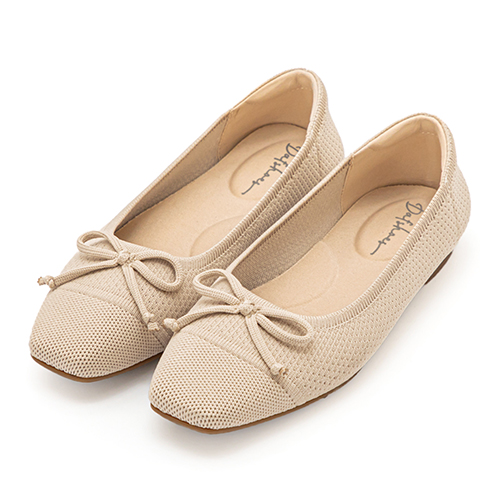【3D零感雲織鞋】蝴蝶結方頭芭蕾鞋