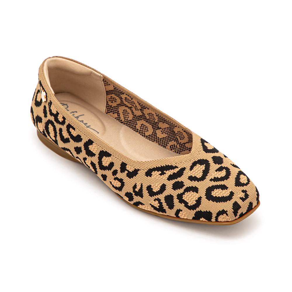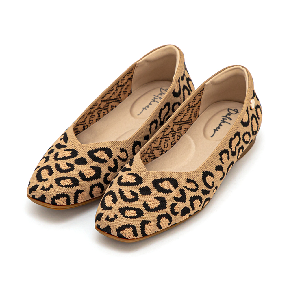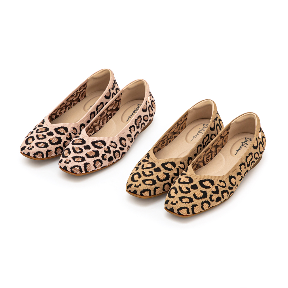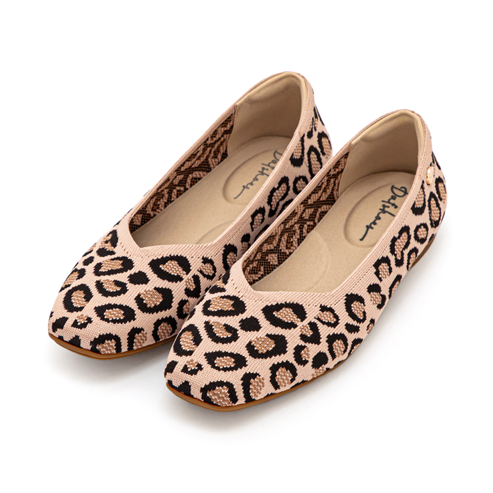 【3D零感雲織鞋】豹紋方頭娃娃鞋