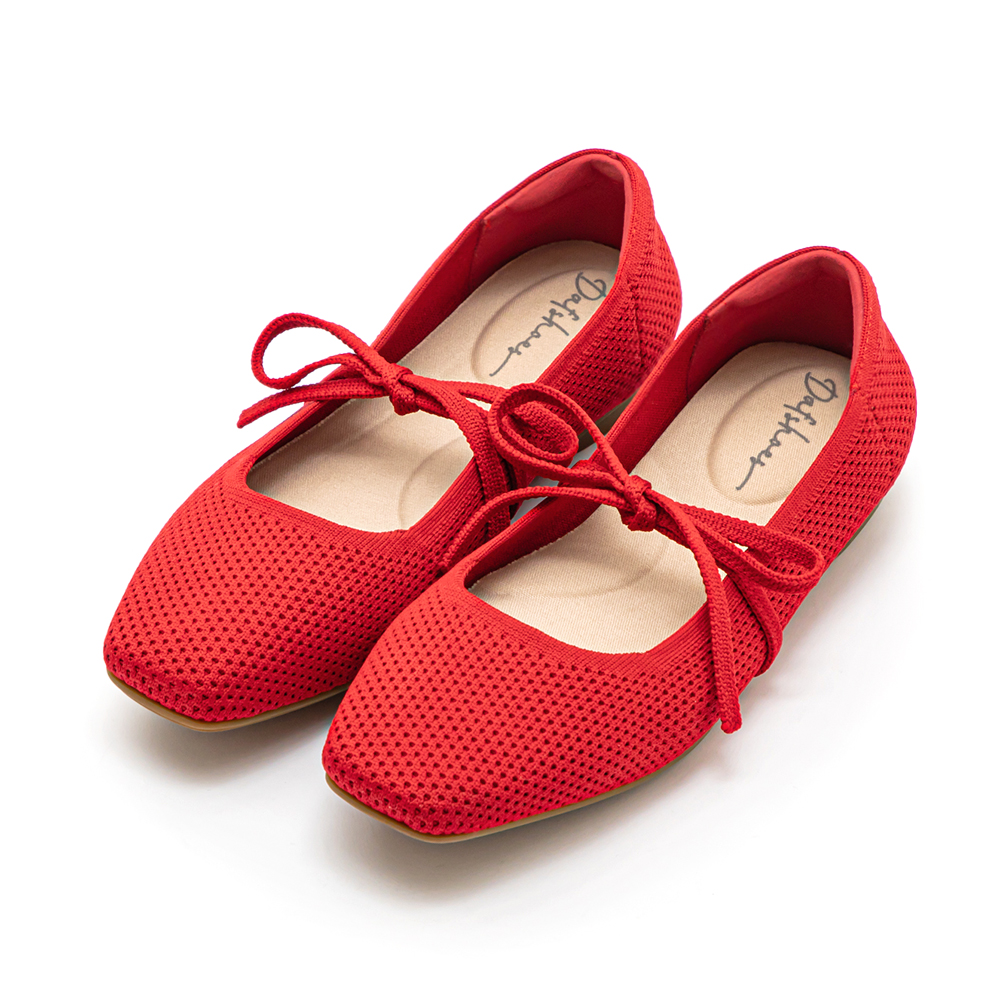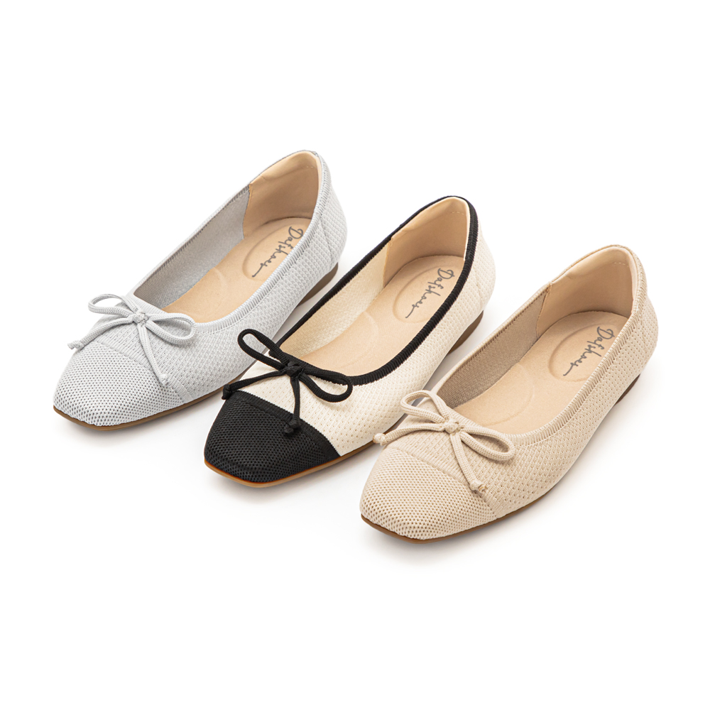 【3D零感雲織鞋】蝴蝶結方頭芭蕾鞋